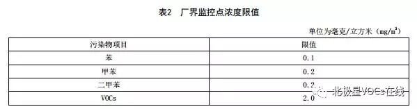 4.2厂界监控点VOCs浓度限值