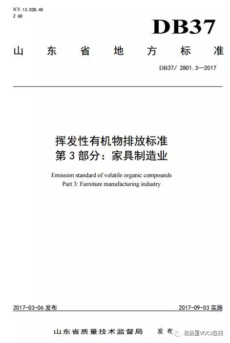 《挥发性有机物排放标准第3部分:家具制造业》已通过审查,现发布为山东省强制性环境保护地方标准,自2017年9月3日起实施。其标准名称、编号如下: